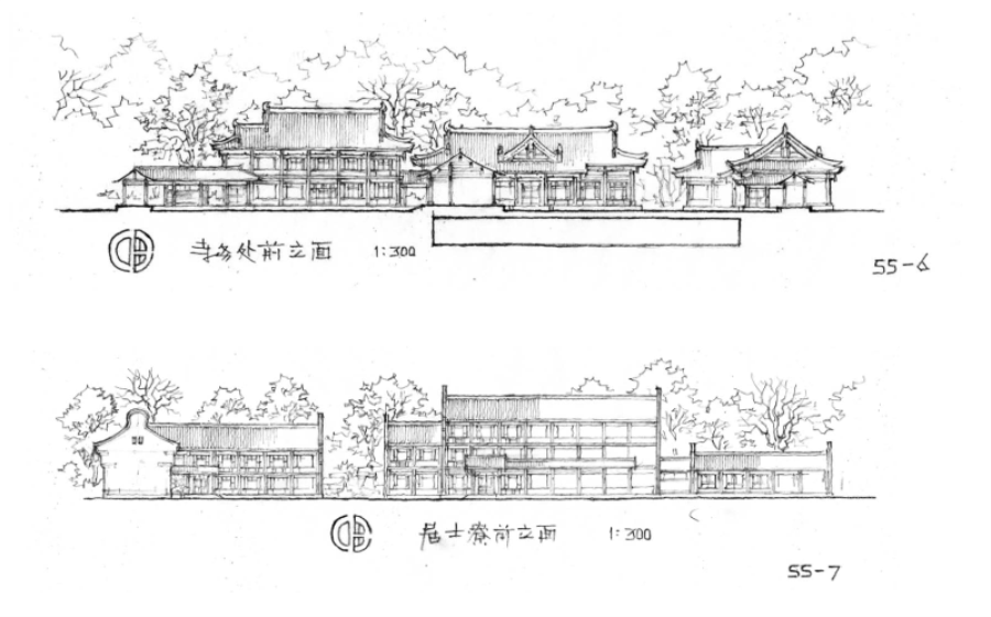 借连廊、庭院将各楼联络在一起