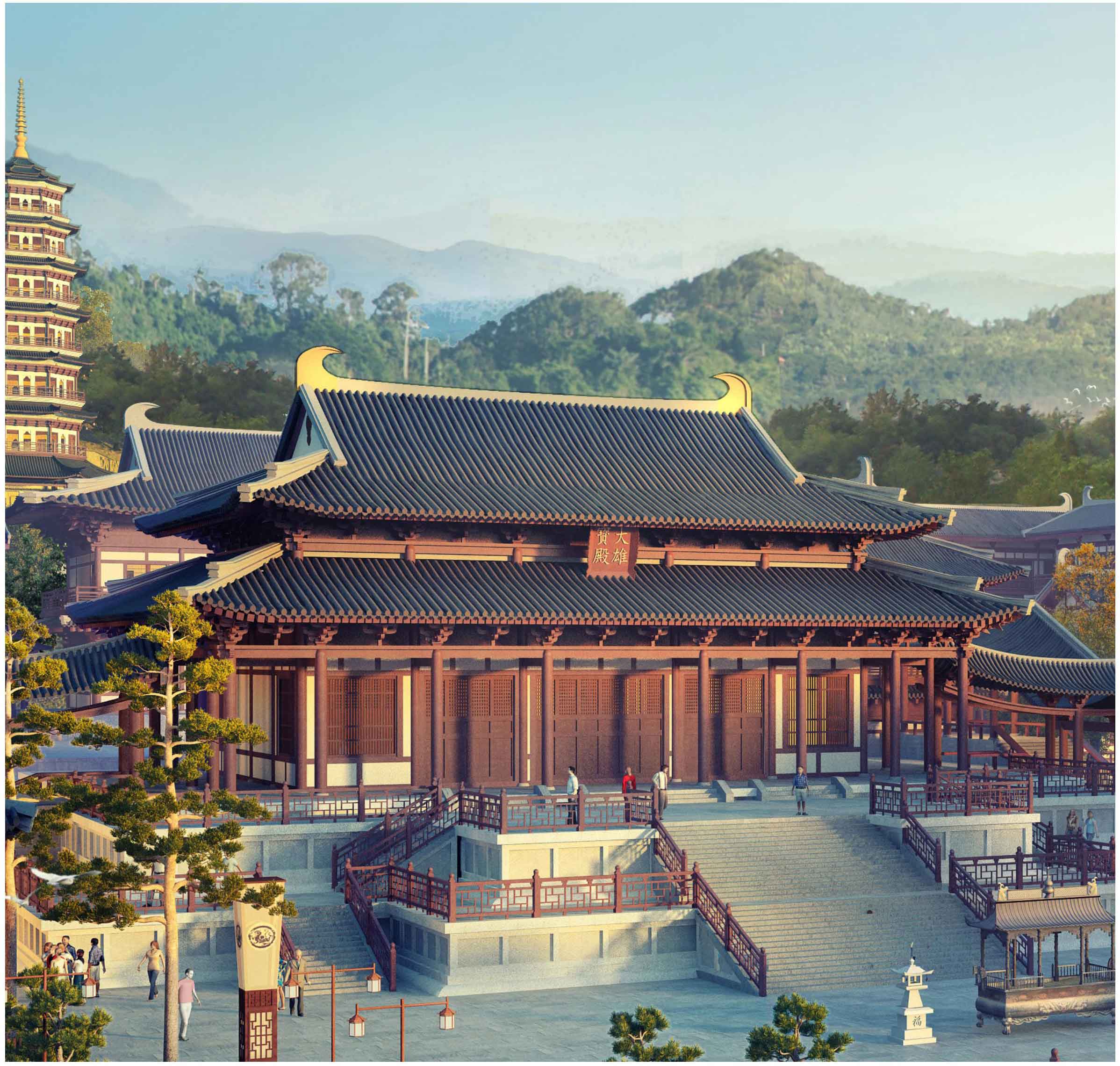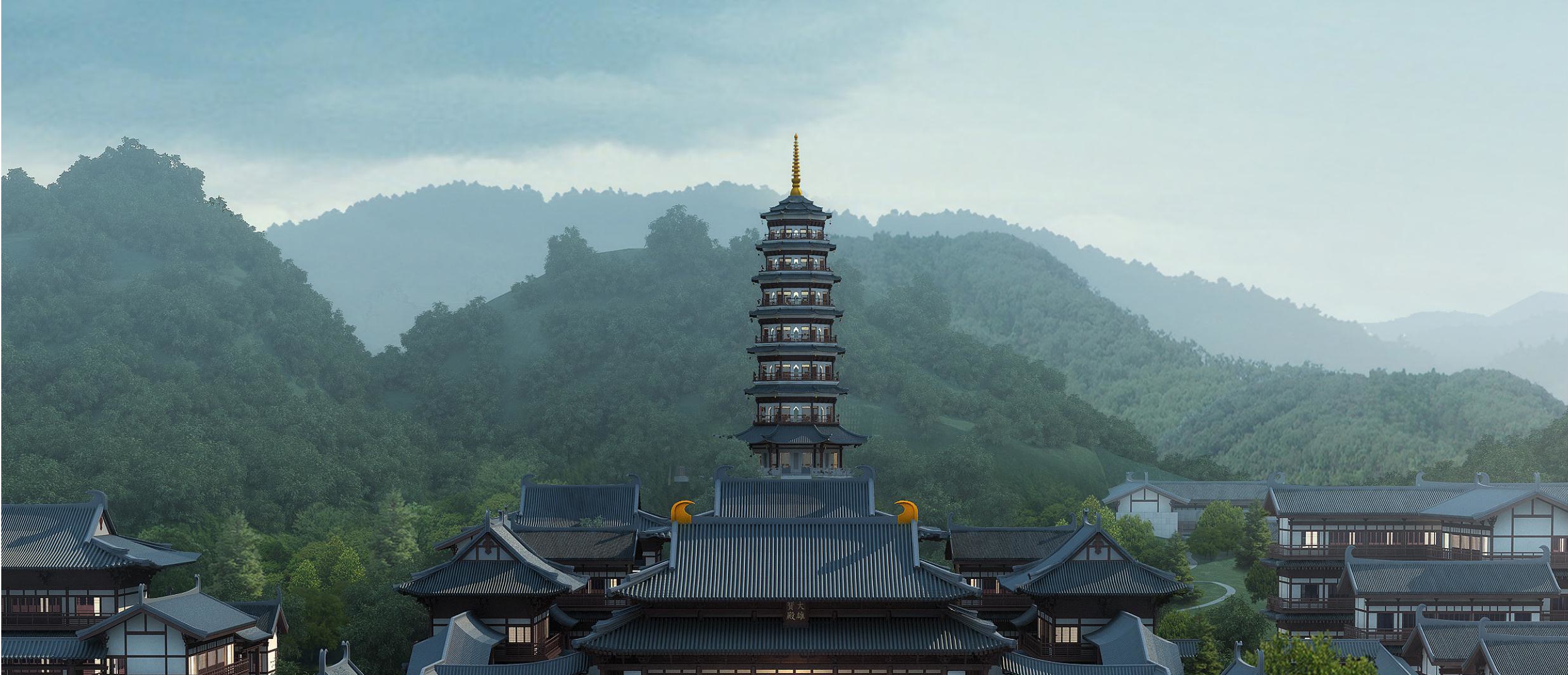有机应用于山寺宝殿之中