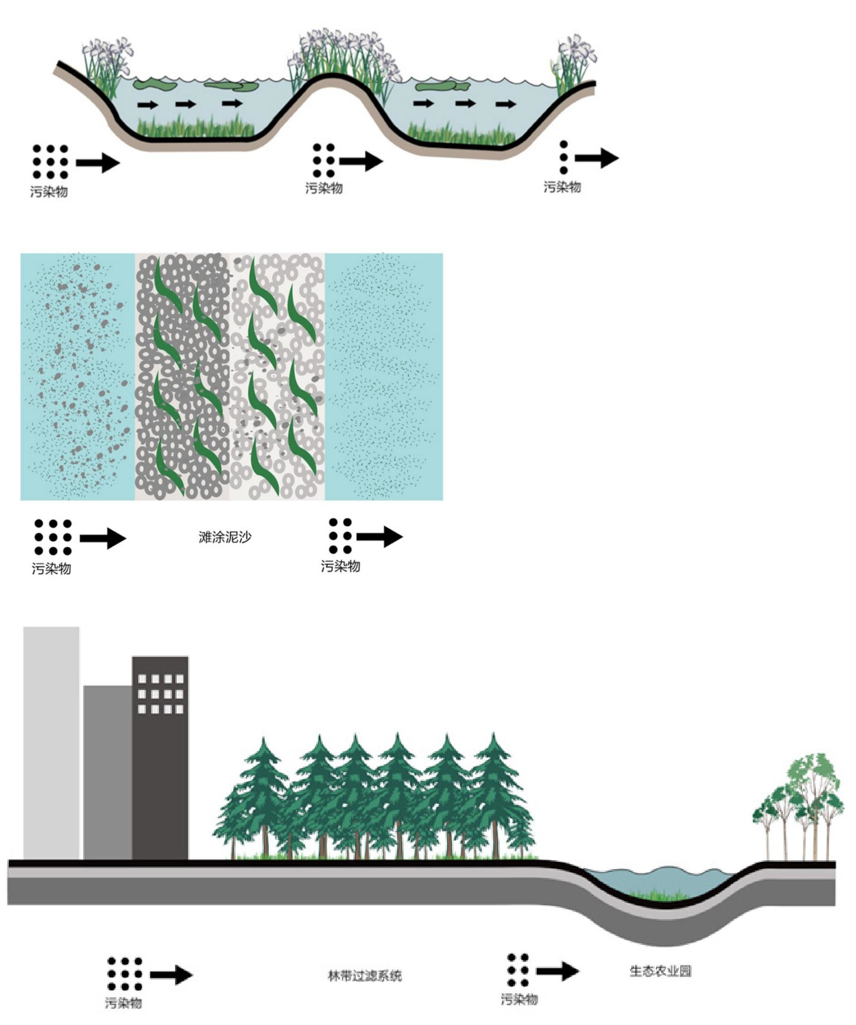 以滩涂栖息地、多水塘生态湿地净化器、