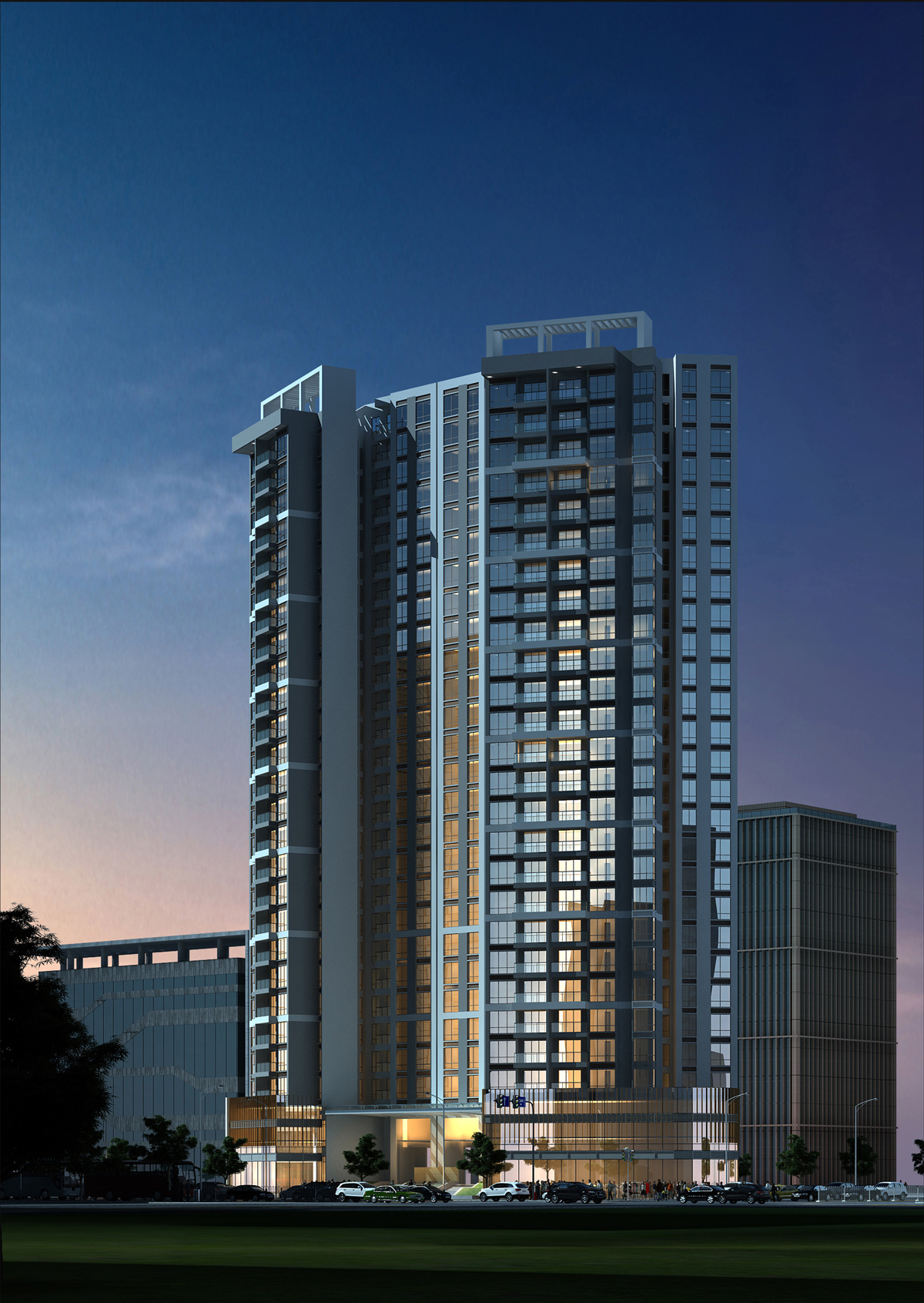 商住建筑面积:34476㎡,景观建筑面积:6566㎡