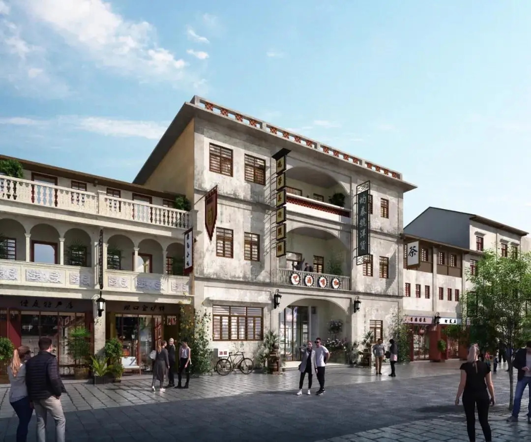 项目设计充分利用松口镇传统建筑、非物质遗产、历史文化等要素,串联移民广场、火船码头、旧船厂等重要节点空间,通过传统建筑活化利用和功能植入方式,丰富街区业态功能类型,形成风情浓郁、尺度宜人的特色古街,引入文化活动表演、灯光秀活动展示、文创空间体验、网红建筑打卡等活动,加深游客对松口古街的游览印象。