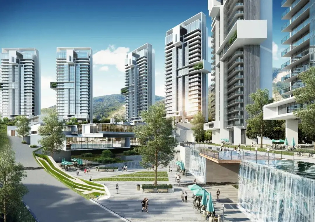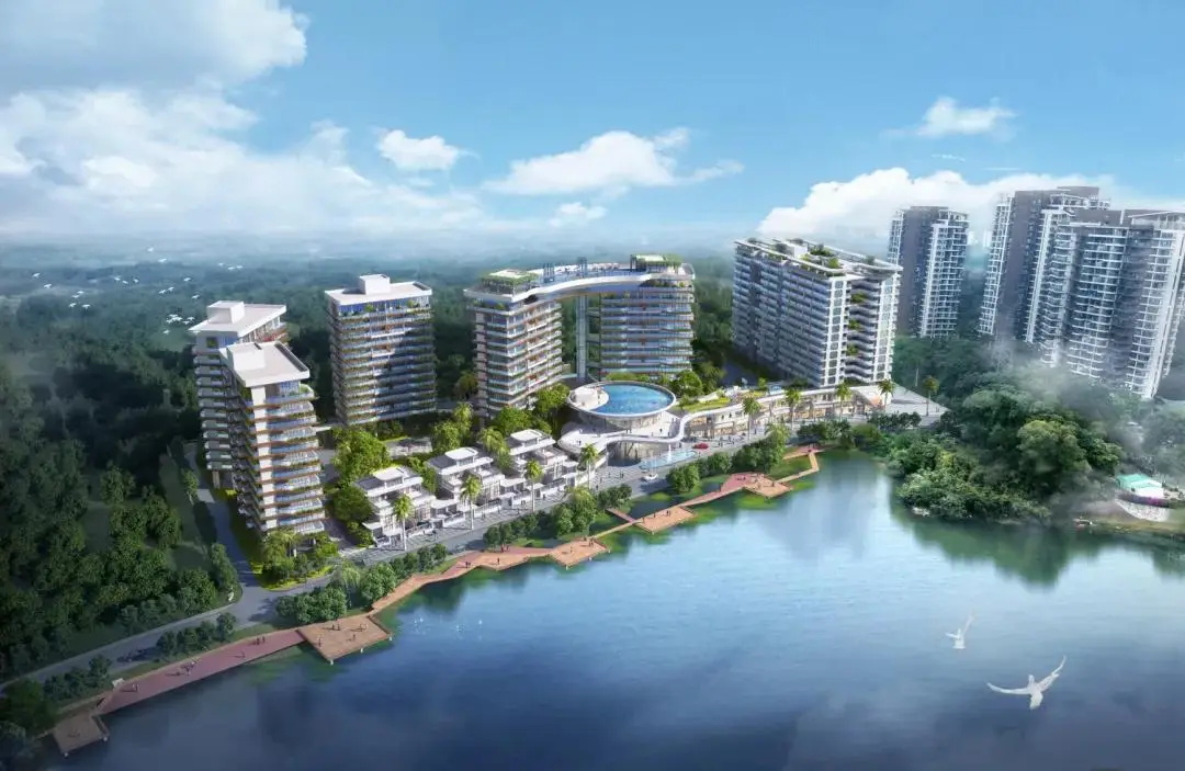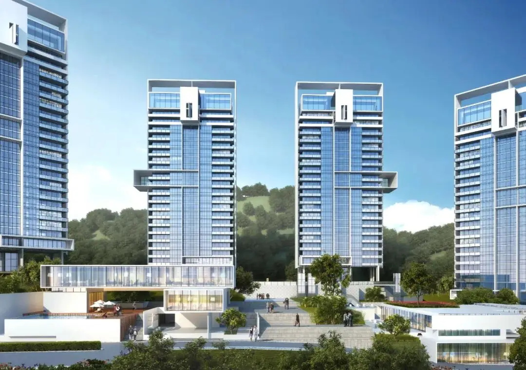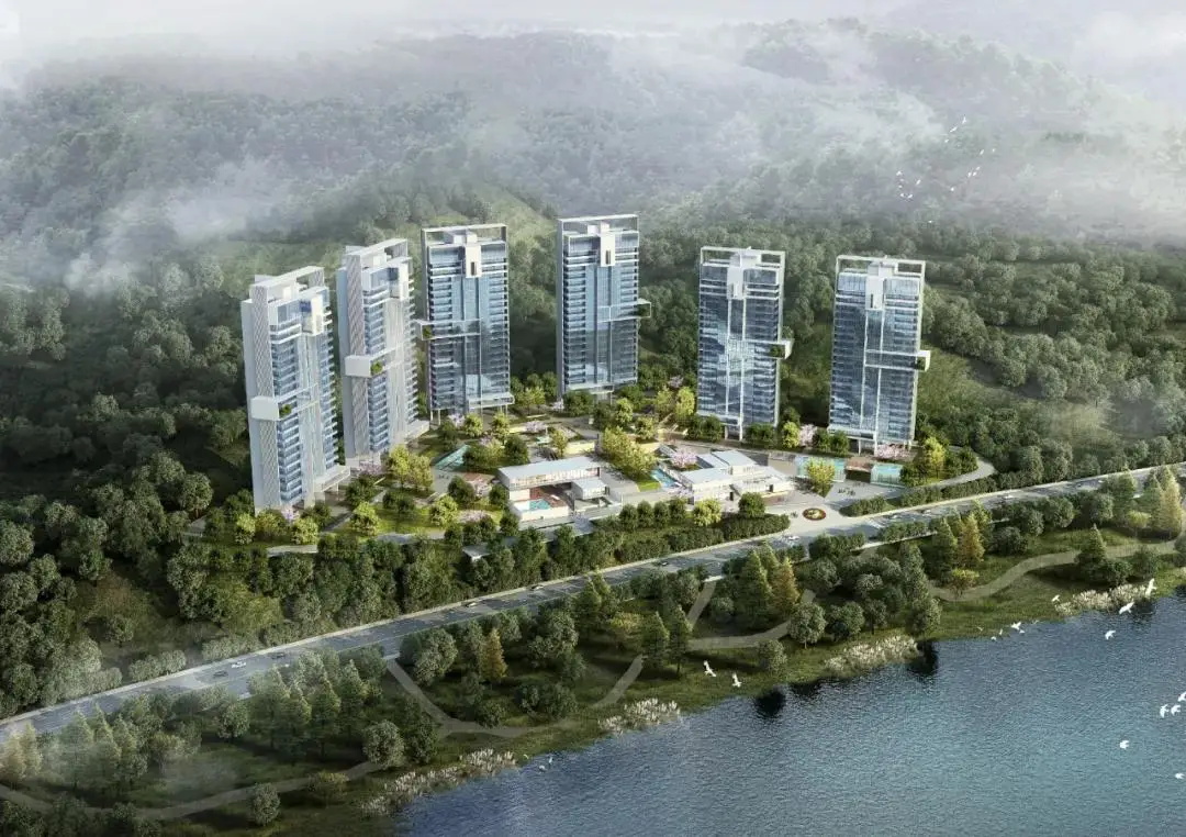 半环抱状的总图布局,敞开怀抱式的拥抱自然,东面实现每一户对景观湖面的最佳视线覆盖,一览无余;西南面对青山绿水创造最开阔的视野;中间依山就势的中心商务区、天际泳池的植入、入口灵动创意的园区商务配套,以及别具个性的整体立面设计,真正让八方来客实现圈层价值的融合。