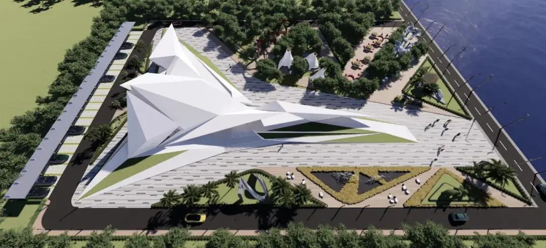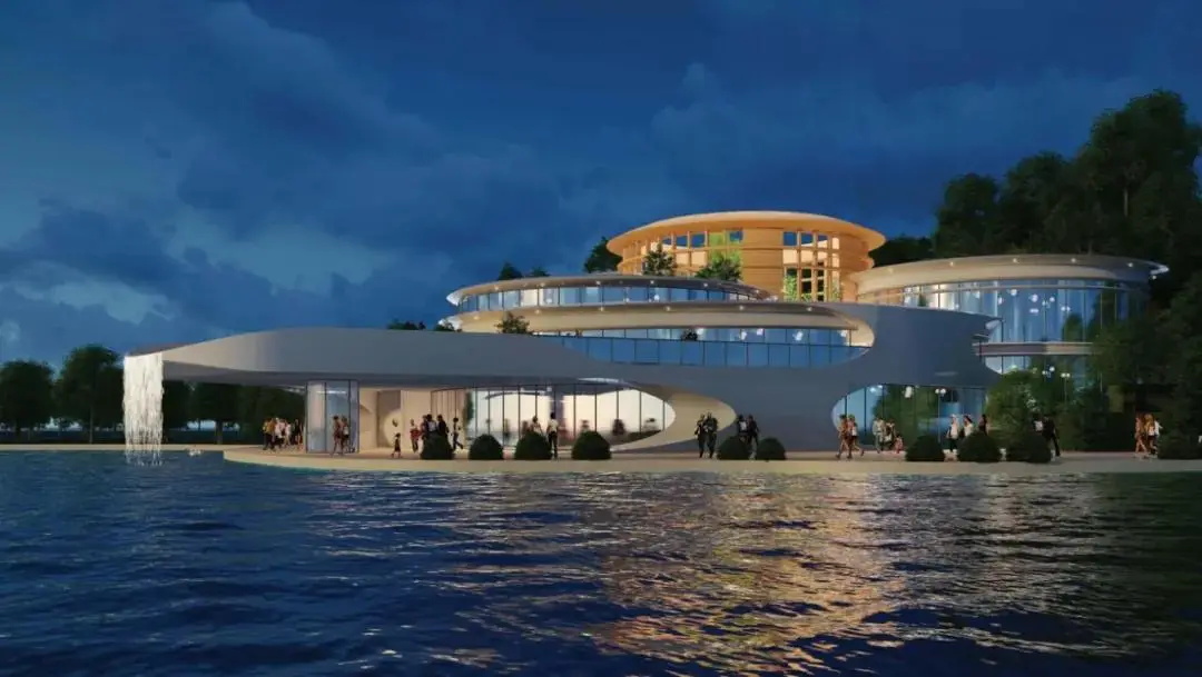项目位于江门新会银湖湾滨海新区,占地约 2 万平方米,拥有一线海岸风景,毗邻银湖湾休闲度假区和湿地公园。馆内设有主入口、前台接待厅、游客休息区、文创展示区、文创周边展示区、演绎区、水吧/咖啡、水吧配套休息区、公共教育空间、景观平台、员工休息区、仓库、卫生间等功能区域。