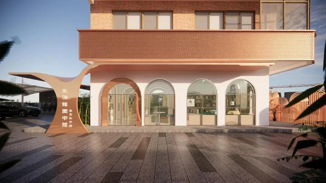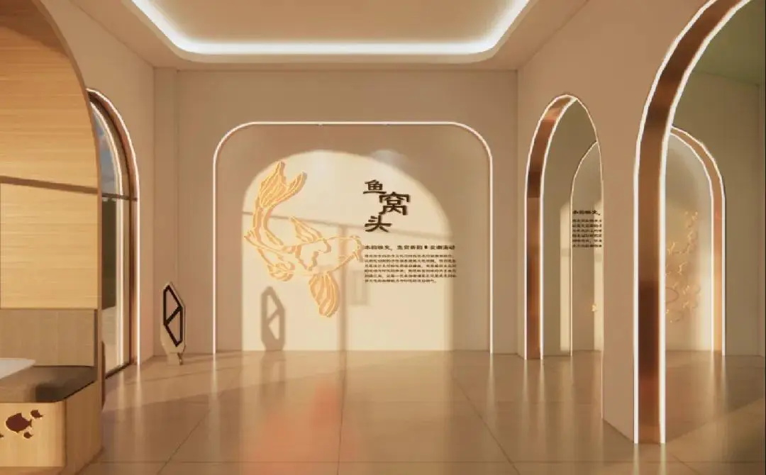 整体设计从“水韵映史,鱼窝新韵·浪潮涌动”的主题出发,充分结合当地文化,以现代创新手法提炼出鱼窝头水乡文化的精髓。特别是在天花设计上,大胆运用波浪曲线,构建出极具韵味的共享社交与阅读空间,营造出如水波荡漾般的灵动氛围,既契合水乡主题,又赋予空间独特的艺术气质,打造出一处现代与传统交融的多功能公共空间。