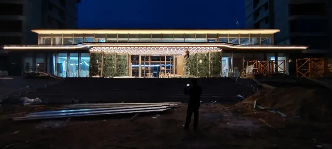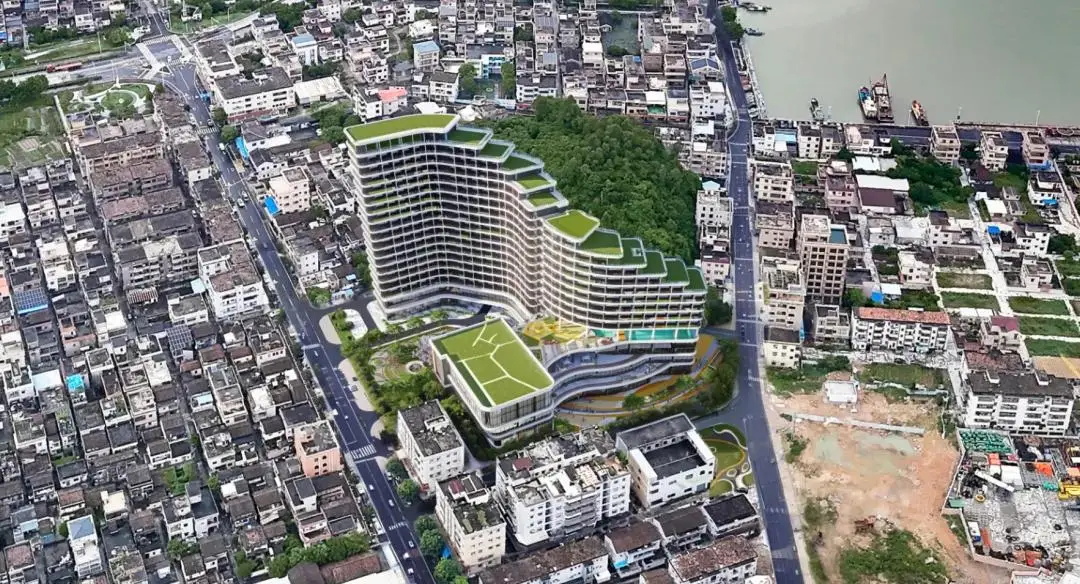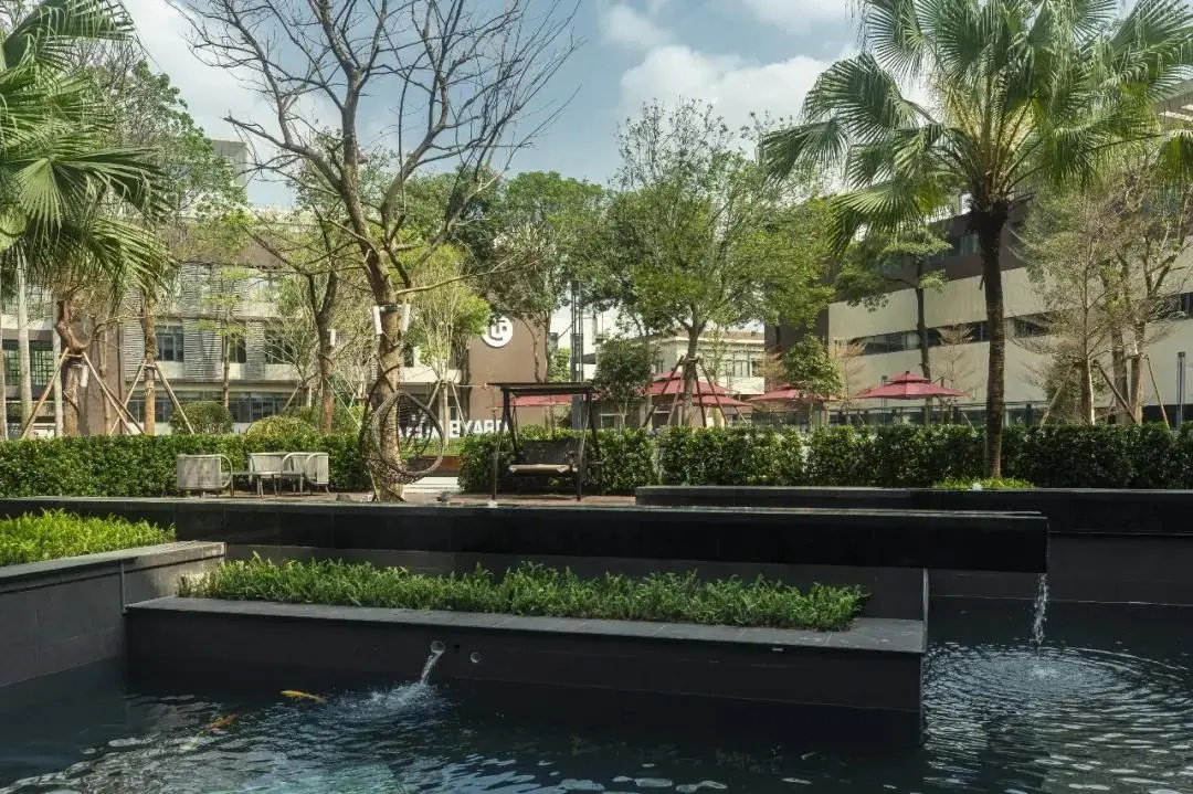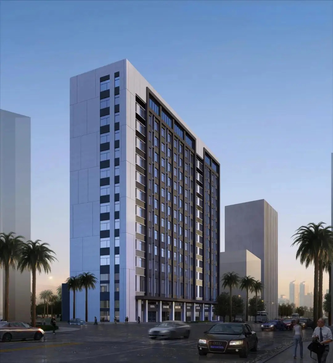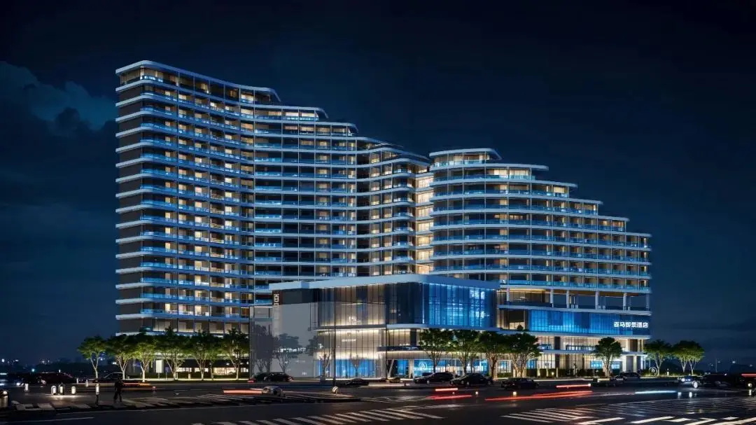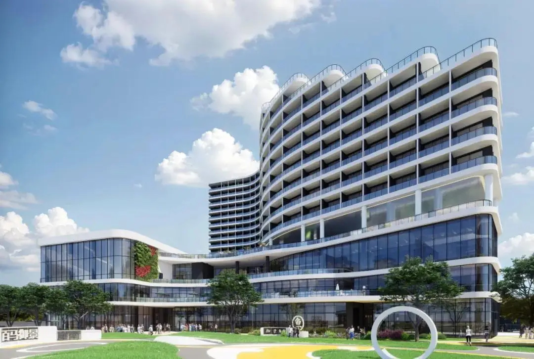 百马御景酒店项目包括A、B两栋塔楼及裙房。A栋裙房设商铺、鱼市等,4至12层为客房与娱乐;B栋1至3层为配套,4至18层为客房区域;成功构建起集居住、商业、餐饮娱乐等多功能于一体的综合性场所。主体建筑巧妙围合,形成一片面积达 1000 多平方米的中心景观绿地,为市民贴心打造出一片城市绿洲,畅享惬意绿色空间。