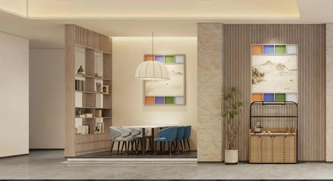 本次对公共建筑旧改设计,在有限的空间条件下,通过高效、合理的设计手法,实现功能与美学的融合。面对建筑主体的限制,我们并未采取大规模的结构调整,而是在高度和细节上下功夫,充分挖掘空间潜力。室内设计通过拱门元素巧妙分隔不同功能区域,同时将空间有机地联系在一起,满足多功能使用需求,既提升了使用效率,又赋予空间更多的层次感。
