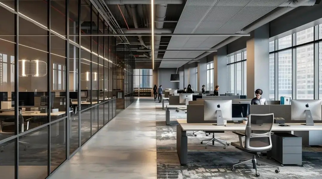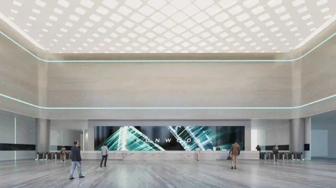 空间设计以智慧社区、绿色能源、未来科技为理念,打造未来智慧工厂。办公大堂运用智慧中枢概念设计,体现科技属性的简洁网格元素纵横交错,推动心理上的情绪切换。天花空间模拟电路板的流畅造型,充分展现品牌基调、诠释企业愿景。